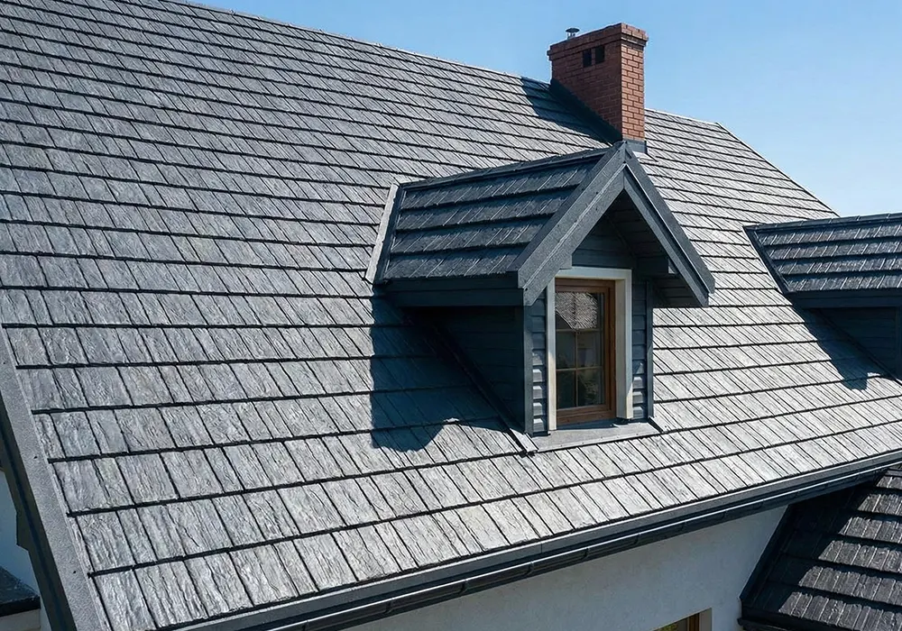 Instead of asphalt-based materials, this system uses individual metal panels shaped to replicate classic shingle profiles. The result is a roof that maintains a familiar look while offering greater strength and structural stability. These panels resist cracking, warping, and premature deterioration. When installed as a complete roofing system, they provide consistent performance across the entire roof surface.